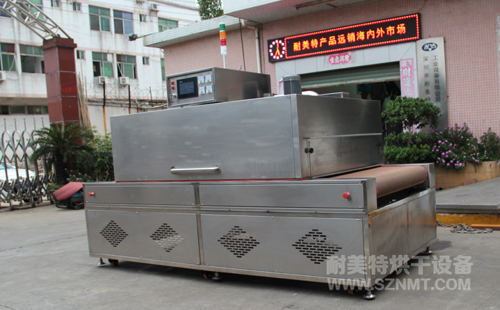 2、外形尺寸(約):長3000mm*高1315mm*寬1600mm,地面到網(wǎng)帶的高度為850mm;進(jìn)料區(qū)長500mm,烘烤區(qū)長2000mm,分為1段,出料區(qū)500mm;