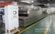 2、外形尺寸(約):長13000mm*高1800mm*寬2400mm,地面到網帶的高度為1000mm;進料區1000mm,升溫區長500mm,恒溫區長10000mm(分5段均可獨立控制),出料區1500mm;
